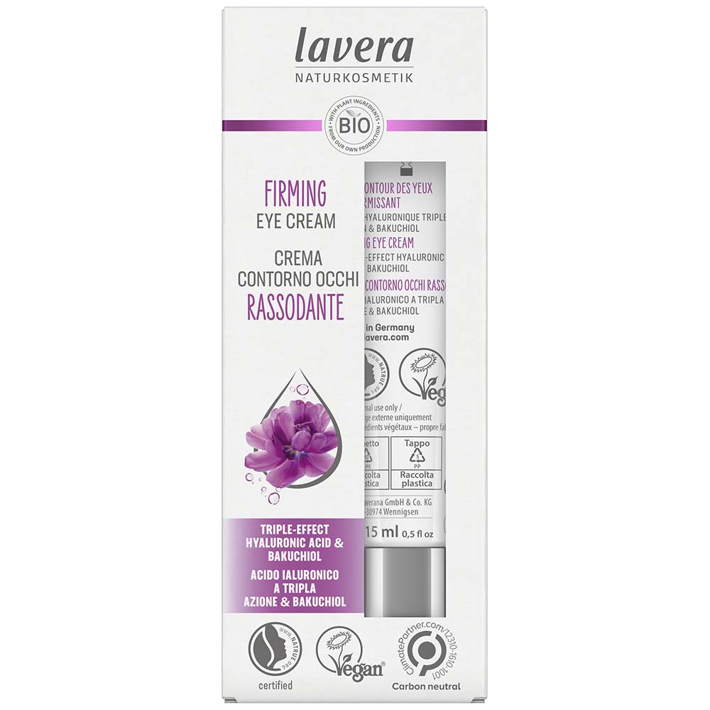 Refreshes the eye contour and reduces wrinkles, experience the lavera sensation of visibly firmer skin